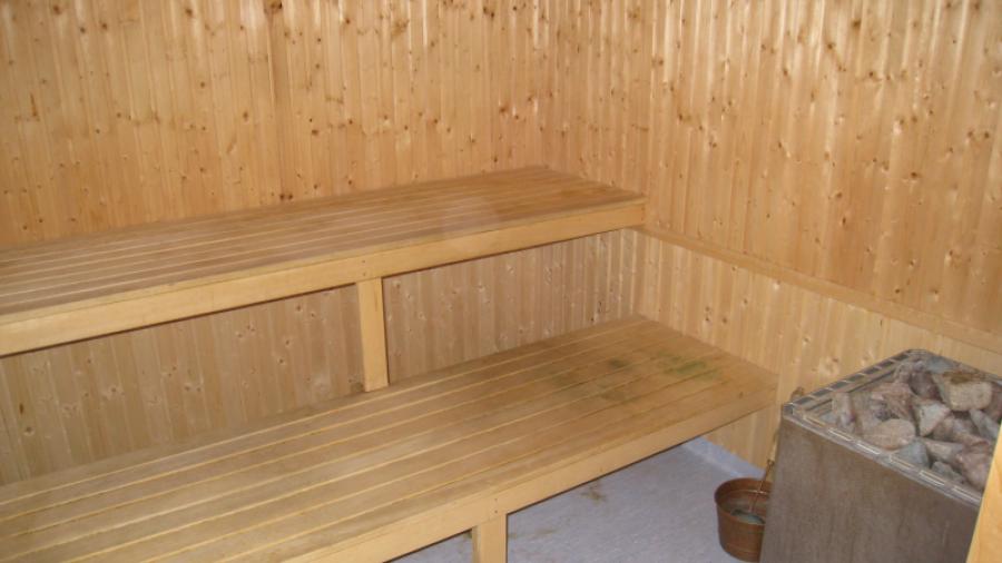 Bastun har ett litet relaxrum och det finns två duschar. Bastun bokas på bokningslista som finns vid ingången i lokalen.